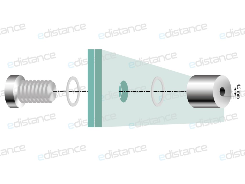 Distanční šroub ø 12 mm z nerezavějící oceli estetického vzhledu se snadnou montáží i demontáží. Odsazení tabulek od podkladu je 17 mm.